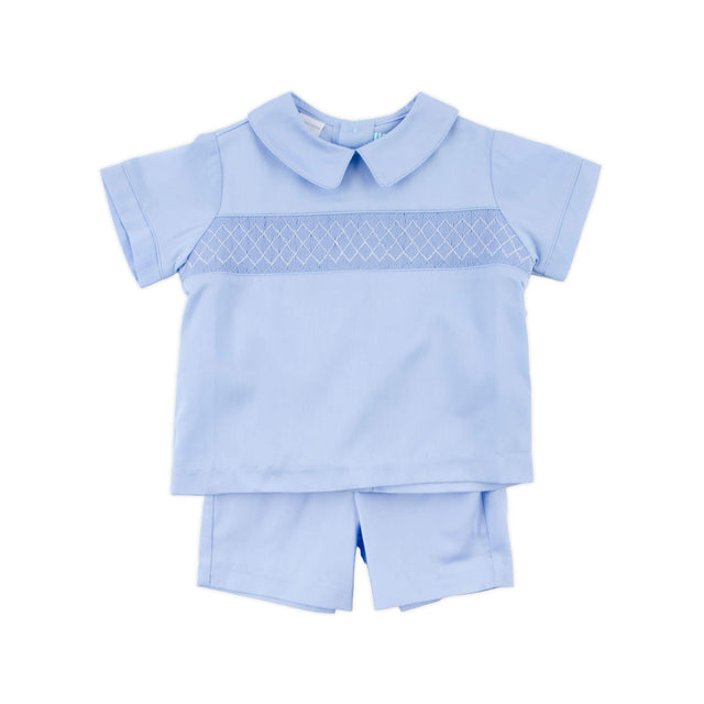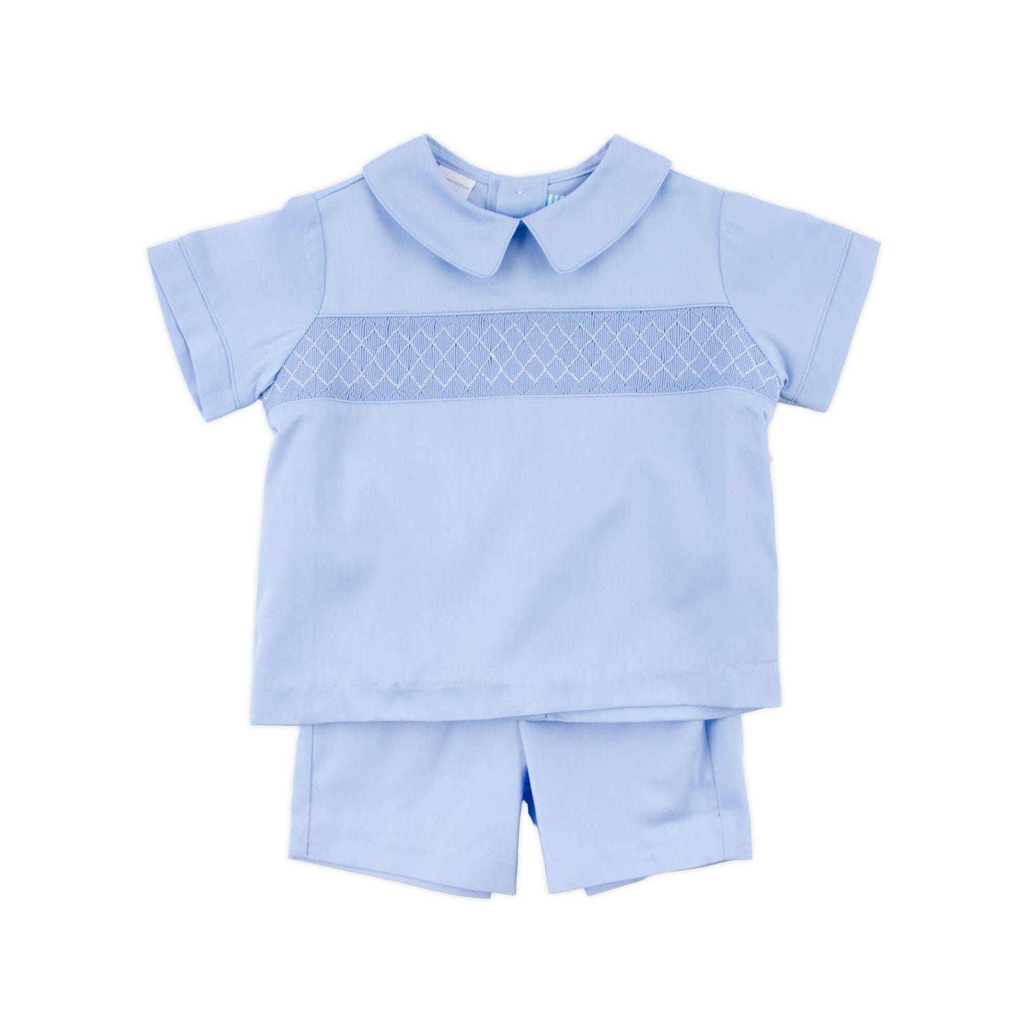 Easter Celebration Blue Pique Smocked Collared Short Set