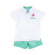Sweet Watermelon Embroidered Green Gingham Polo Short Set