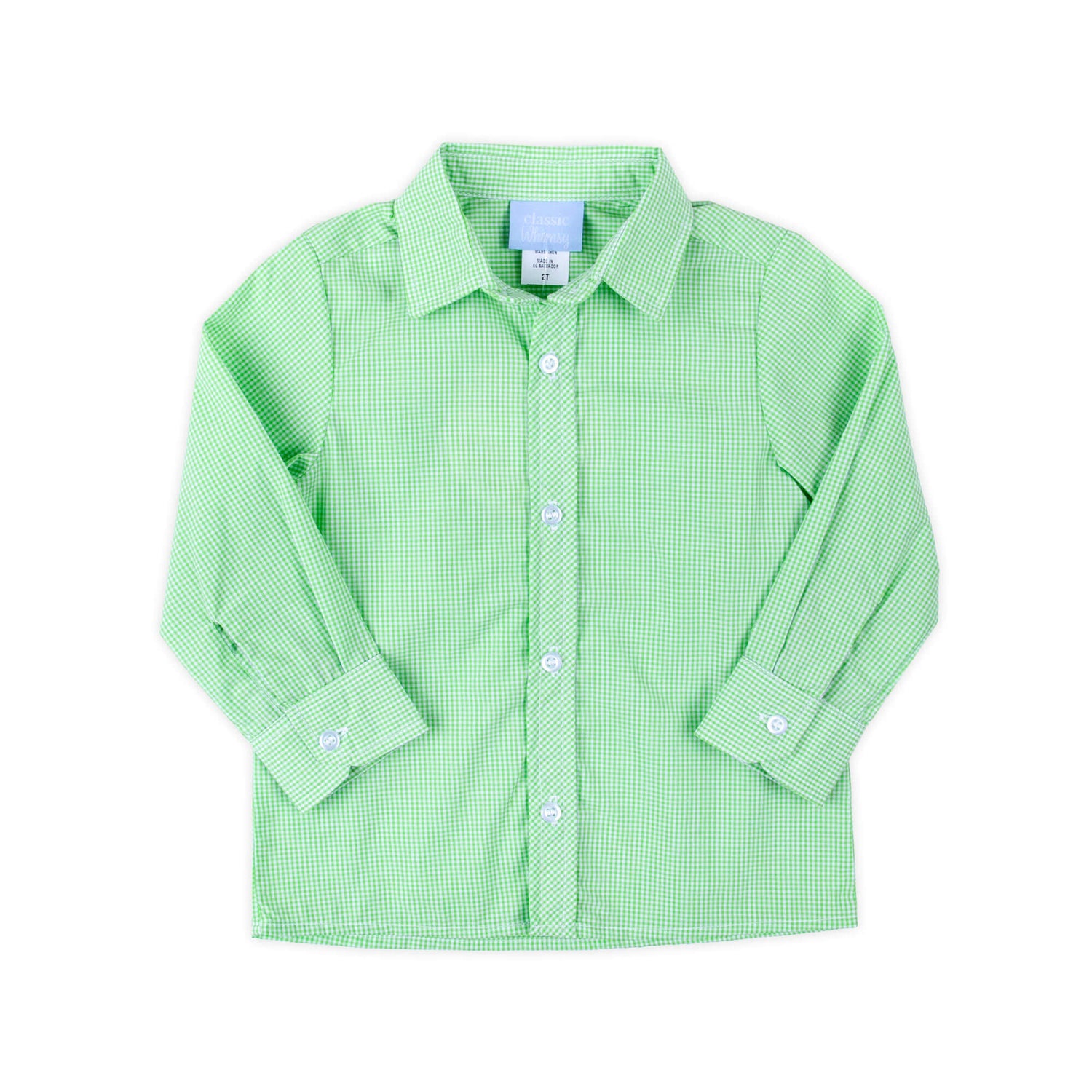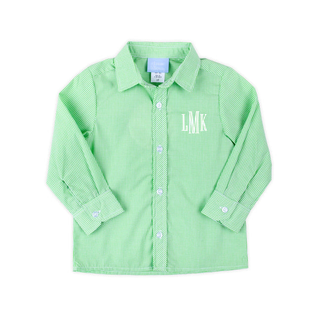 Celebrate Easter in sweet style with our Green Gingham Button Down Shirt. This vibrant green gingham long-sleeve shirt is perfect for a joyful Easter celebration. Add a monogram for an extra special touch and let your little boy shine on this special day.