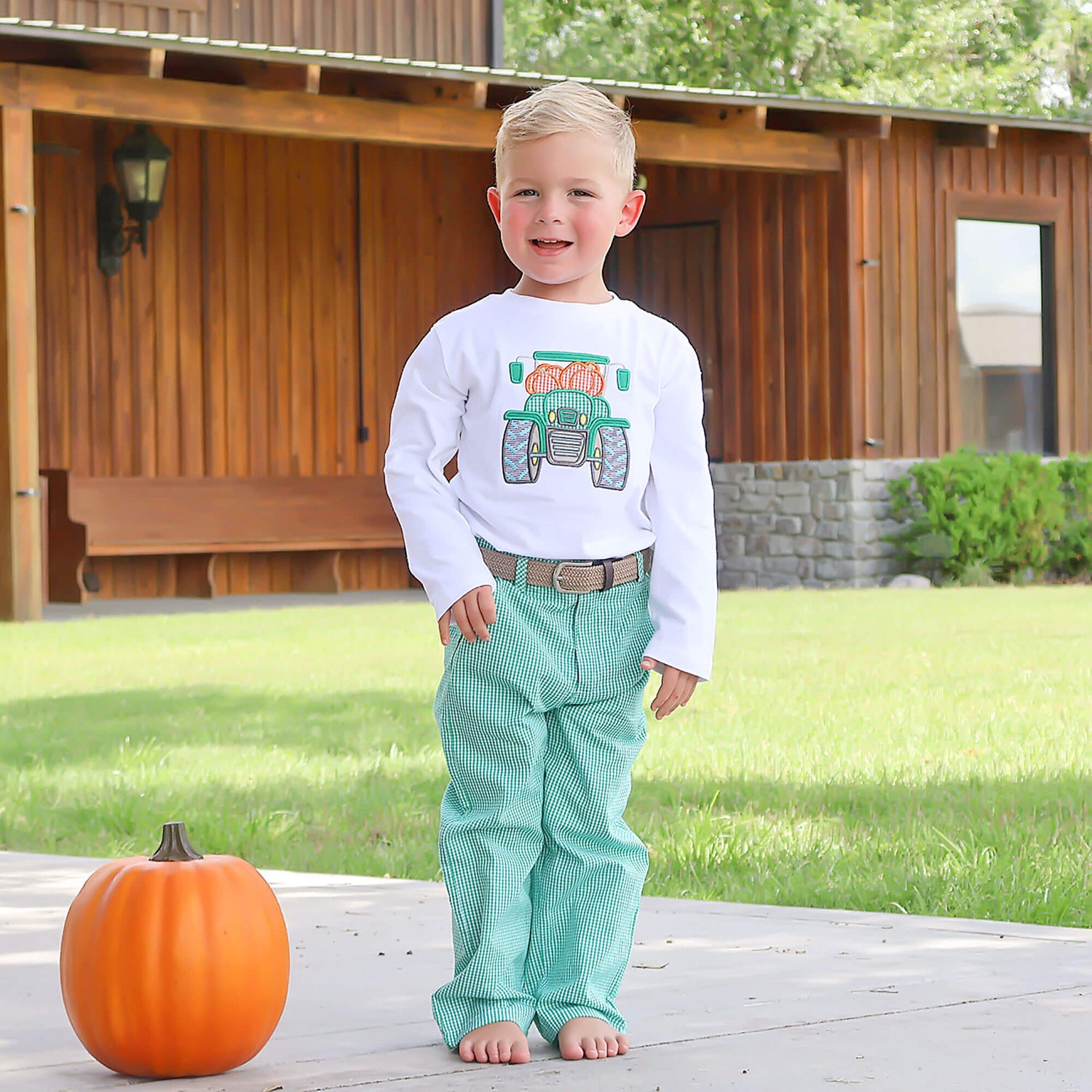 This Green Gingham Standard Pants are a classic addition to your big boy's wardrobe for year-round wear. Versatile and stylish, they can be paired with your favorite button-down or polo shirt for a timeless look. The classic straight silhouette features slant pockets, back welt pockets, a zip fly with button closure, and belt loops. These pants are perfect for school, church, play, or a collegiate look.