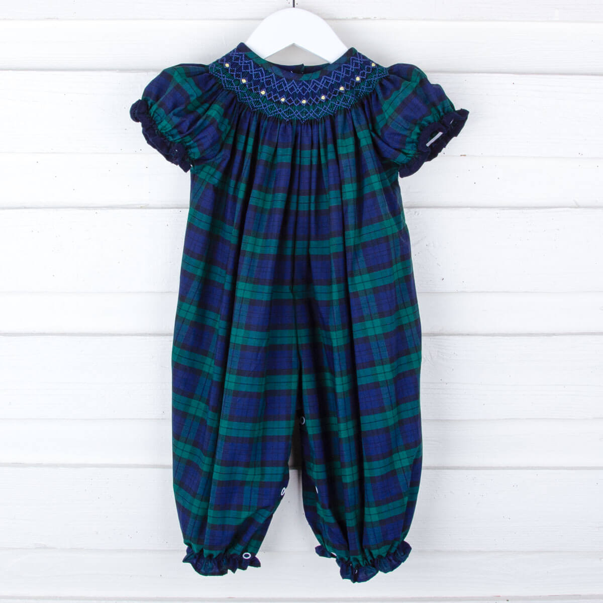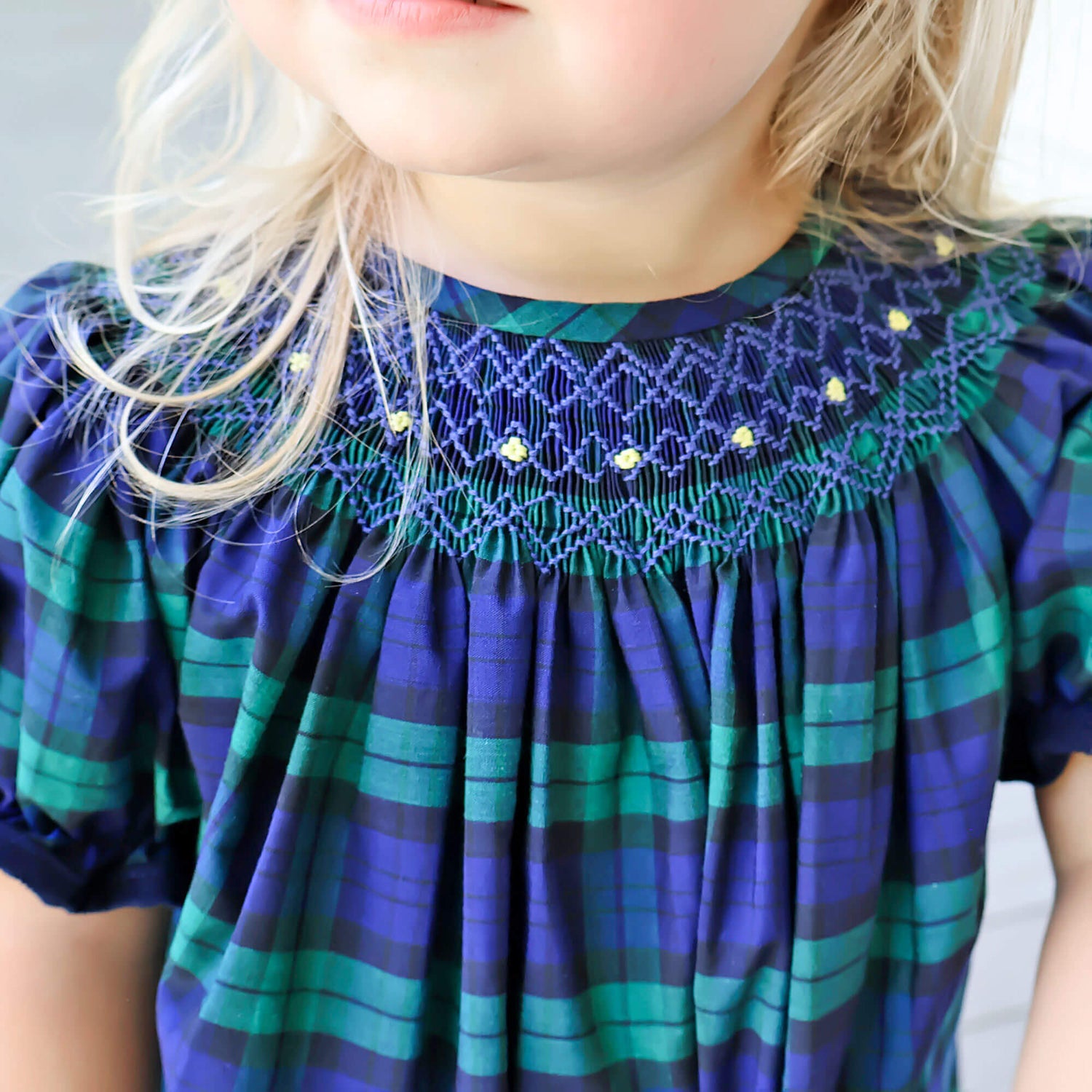 Hamilton Plaid Navy & Green Smocked Long Bubble