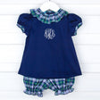 Brighton Plaid Collar Navy Pique Bloomer Set