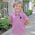 Show your team spirit in style with our Maroon Stripe Polo. Designed for comfort and durability, this short sleeve knit stripe polo is not only perfect for football season playtime but also offers versatility for various occasions. Whether you're cheering from the sidelines or enjoying a casual outing, this polo keeps you looking sharp and feeling comfortable. Take it a step further and personalize the look by adding a monogram, making it uniquely yours!