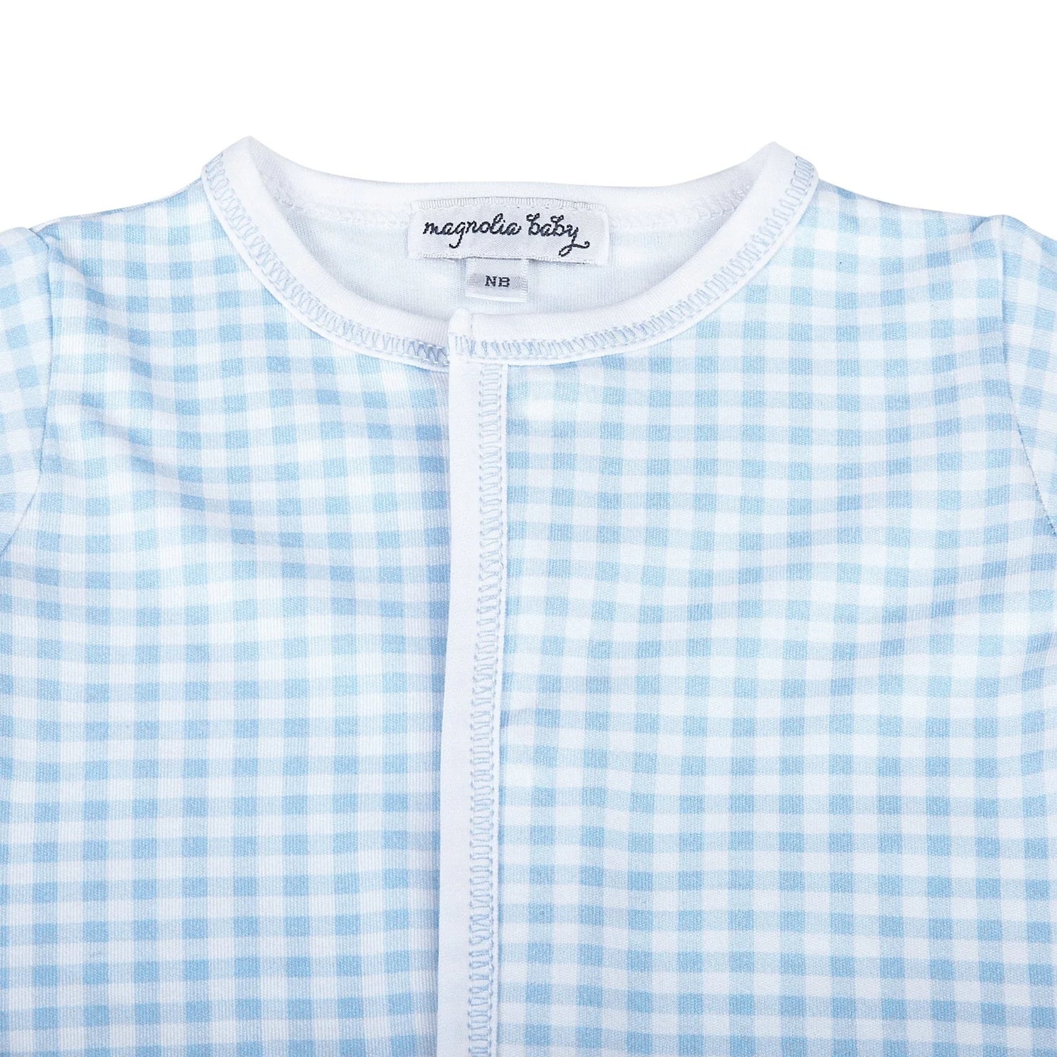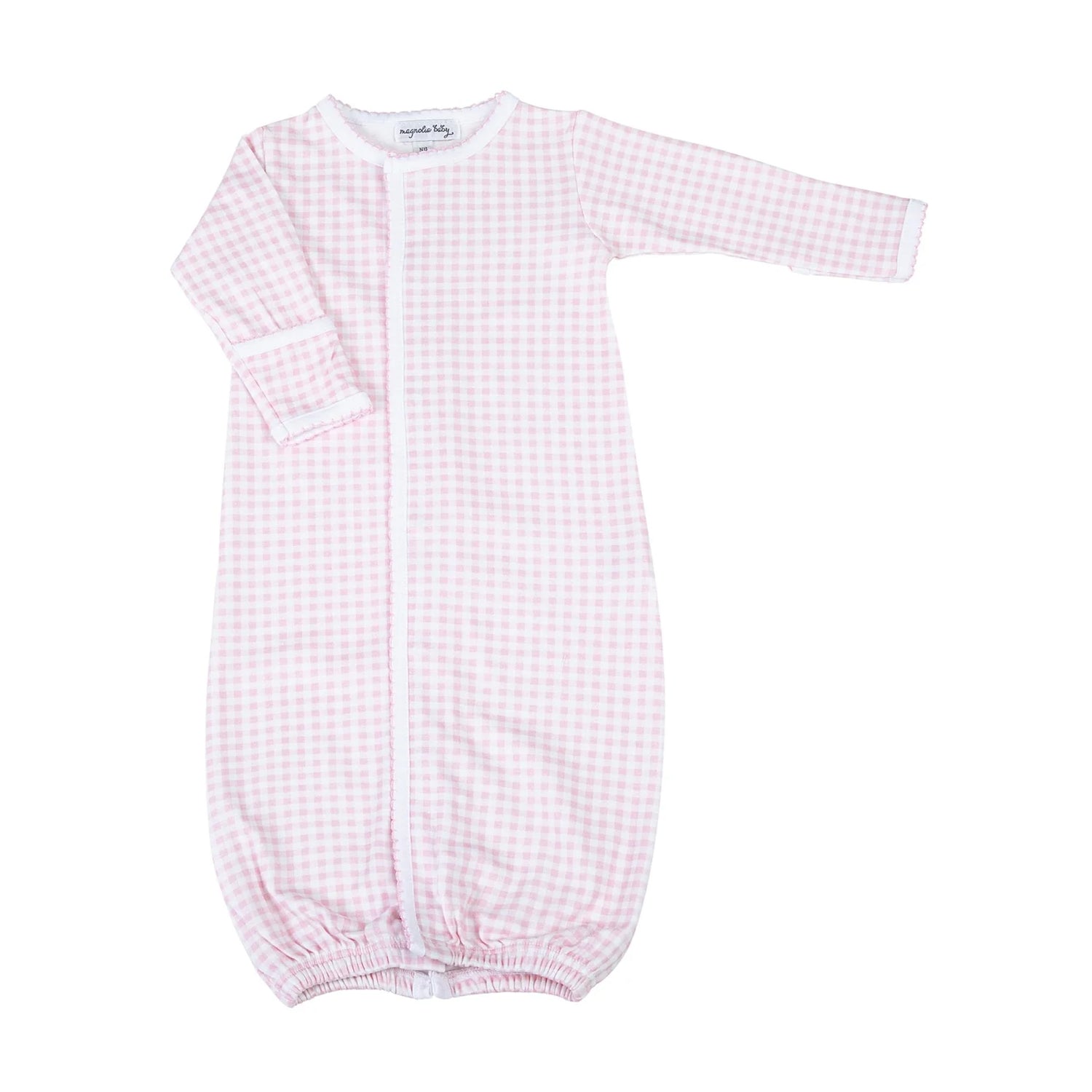 Magnolia Baby's Mini Checks Knit Converter Gown is a classic and perfect for any occasion. Crafted from 100% Pima cotton, this mini check pattern in blue and pink adds a touch of classic elegance, while the snap closure ensures easy dressing and diaper changes. Mix and match this gown with other pieces in Magnolia Baby's Mini Checks collection for a perfectly coordinated outfit. Machine washable for easy care.