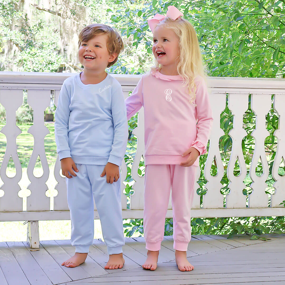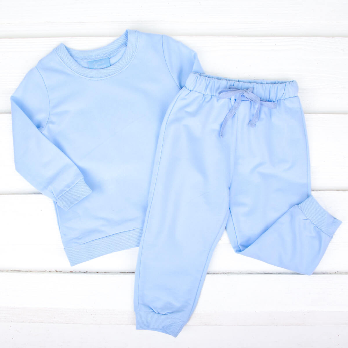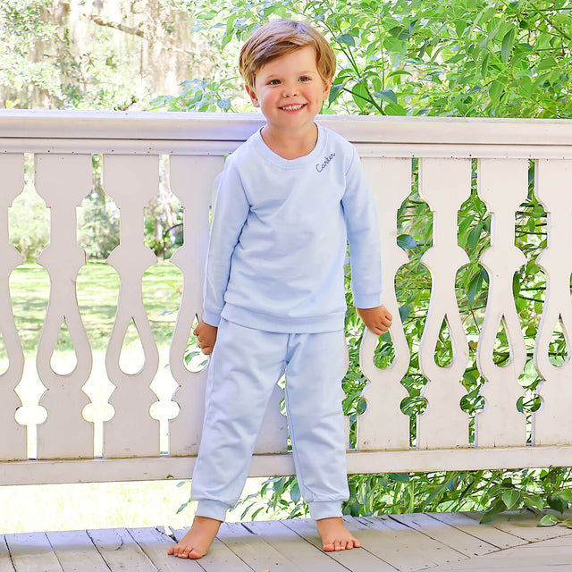 Let your little one enjoy fall and winter weather in our adorable Light Blue Jogger Set! Perfect for cooler days, this set features a light blue French terry sweatshirt and matching joggers with an easy pull-on string waistband. Add a monogram for a special touch and make it uniquely theirs!