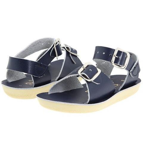 Classic navy leather and shiny brass buckles. The cutest unisex children's sandal. These surfer sandals will coordinate any outfit!
