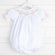 This special bubble features sweet light pink cross smocking and delicate floral details, making it an ideal choice for your little girl's Easter or baptism outfit! For easy and quick changes, the bubble is designed with convenient snaps in stride
