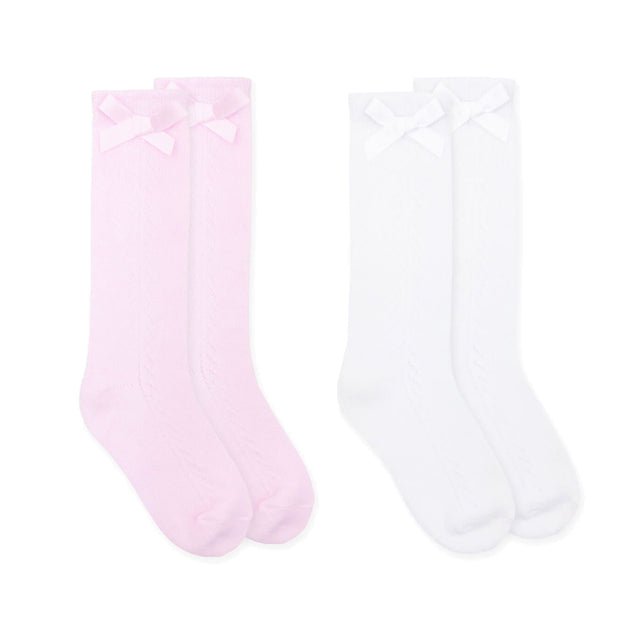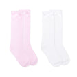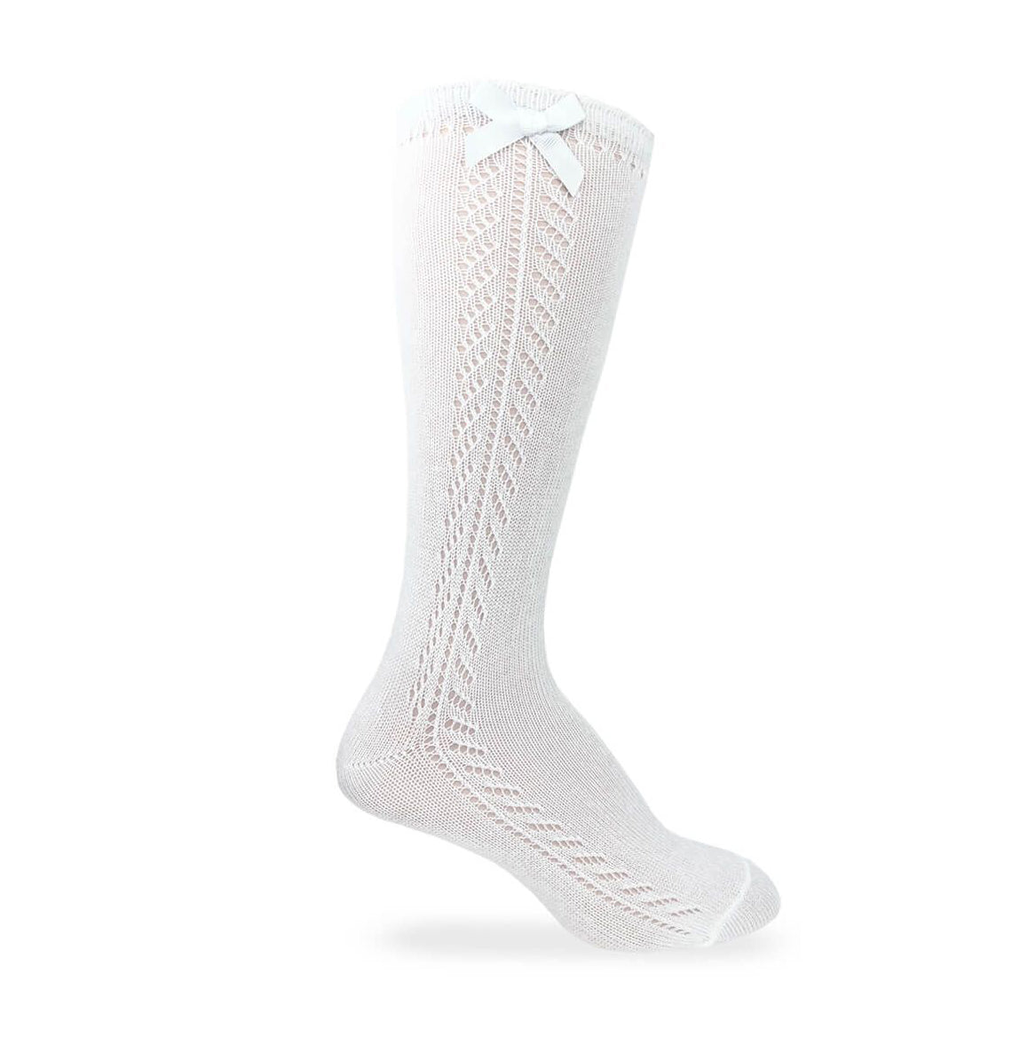 Girls pretty pointelle bow knee high socks are perfect for dressing up any outfit! Soft cotton rich blend keeps legs and feet comfortable. Knit-in pointelle design is classic and stylish for any occasion with cute added bow detail.