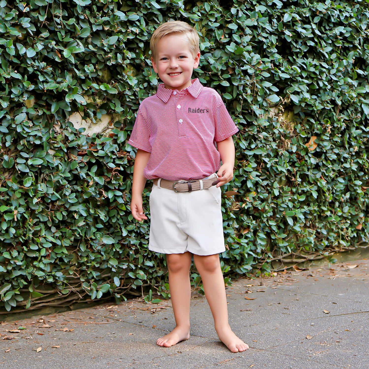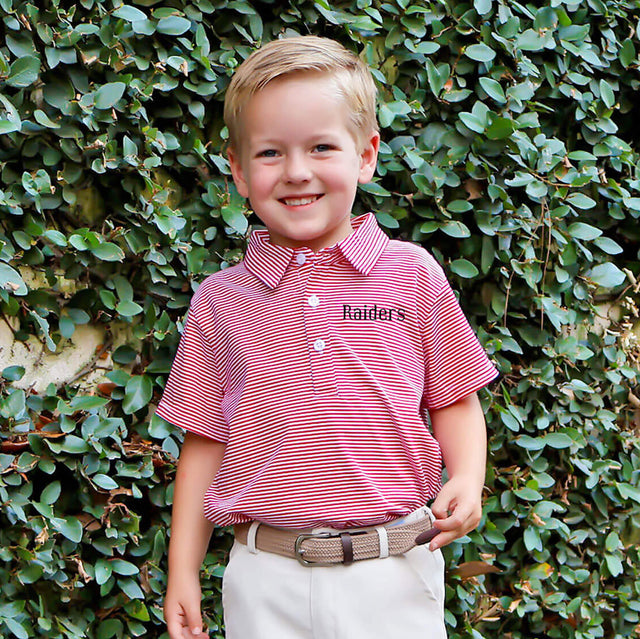 Show your team spirit in style with our Red Stripe Polo. Designed for comfort and durability, this short sleeve knit stripe polo is not only perfect for football season playtime but also offers versatility for various occasions. Whether you're cheering from the sidelines or enjoying a casual outing, this polo keeps you looking sharp and feeling comfortable. Take it a step further and personalize the look by adding a monogram, making it uniquely yours!
