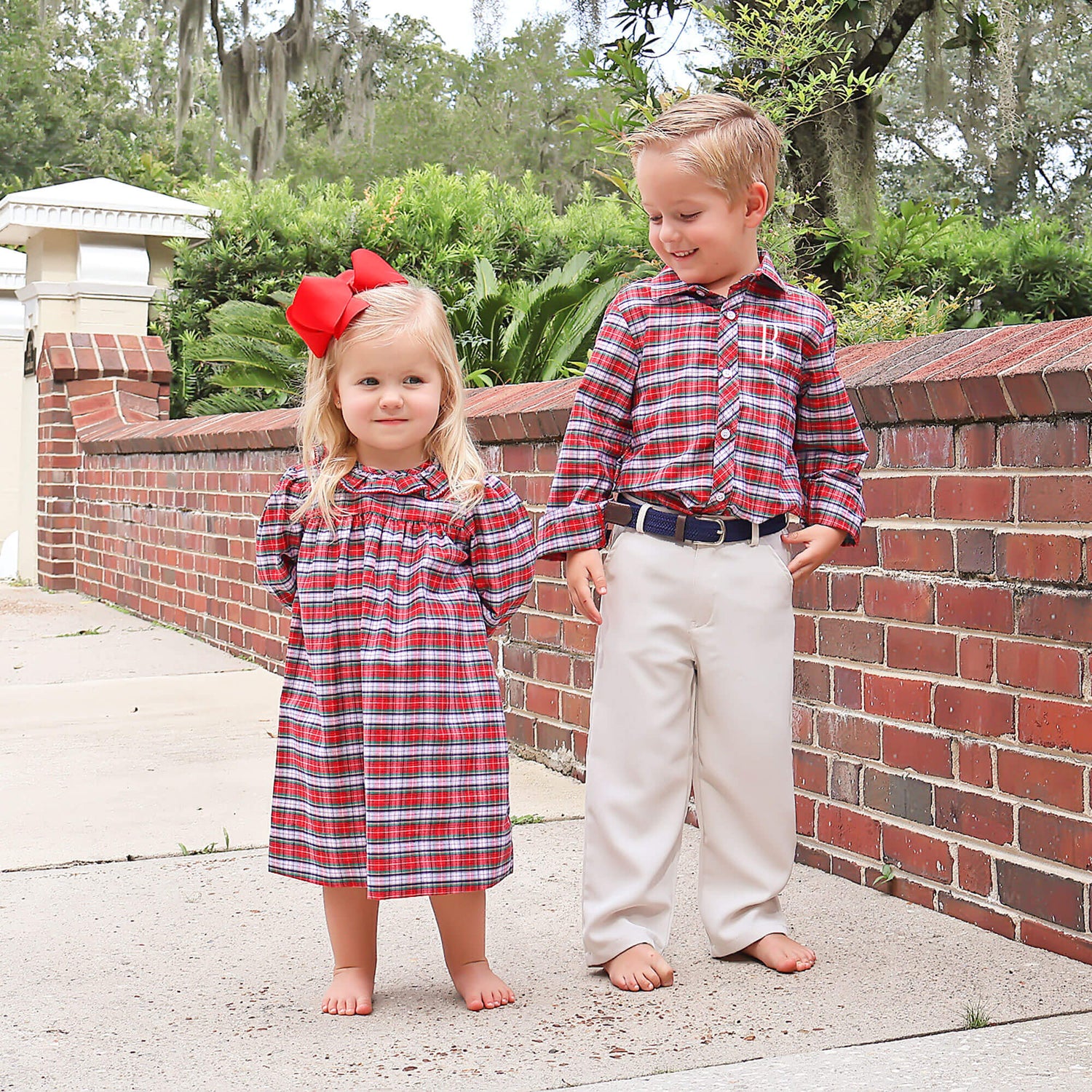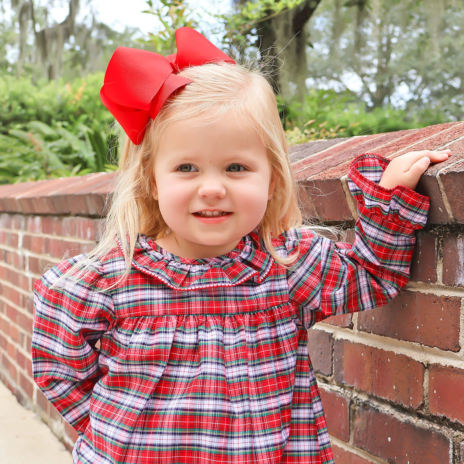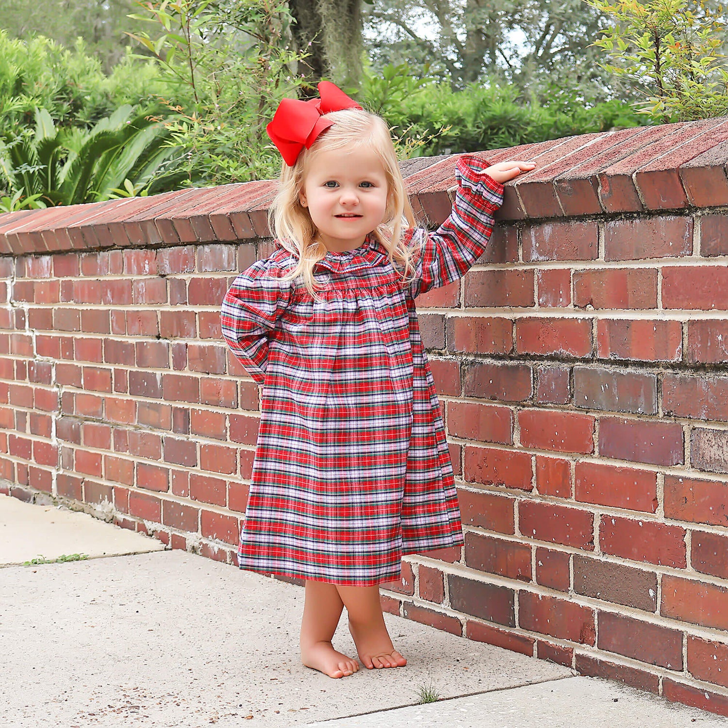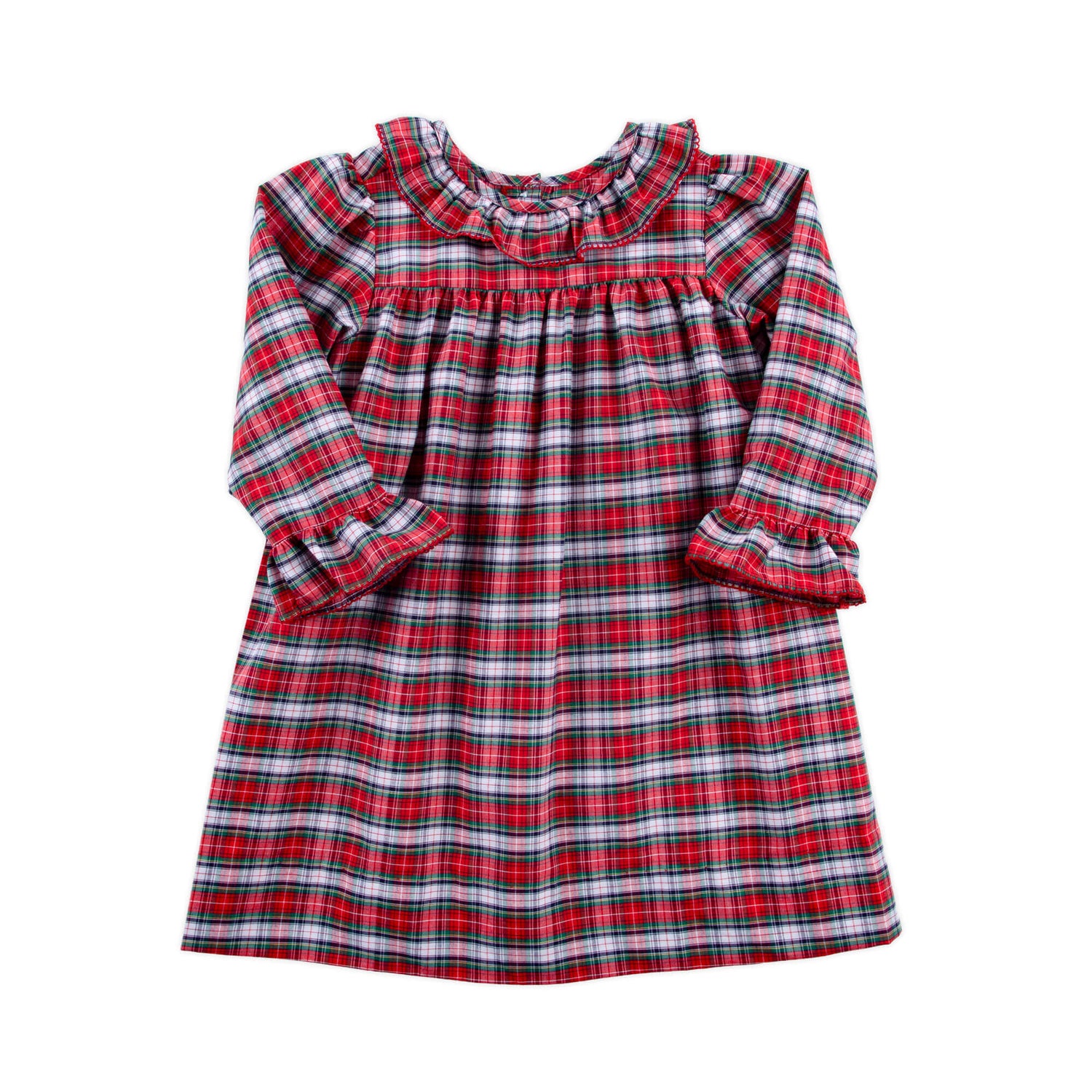 Celebrate Christmas in our Seattle Red Plaid Ruffle Collared Dress. This charming red plaid dress features a ruffle collar and long sleeves, making it perfect for the festive season. A timeless choice for your holiday celebrations!