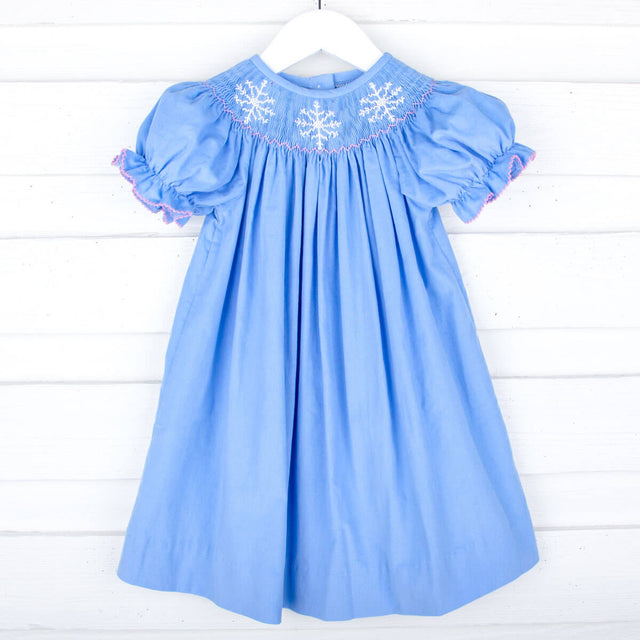 Snowflake Smocked Blue Corduroy Bishop Dress