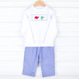 Transportation Smocked Royal Blue Gingham Pant Set