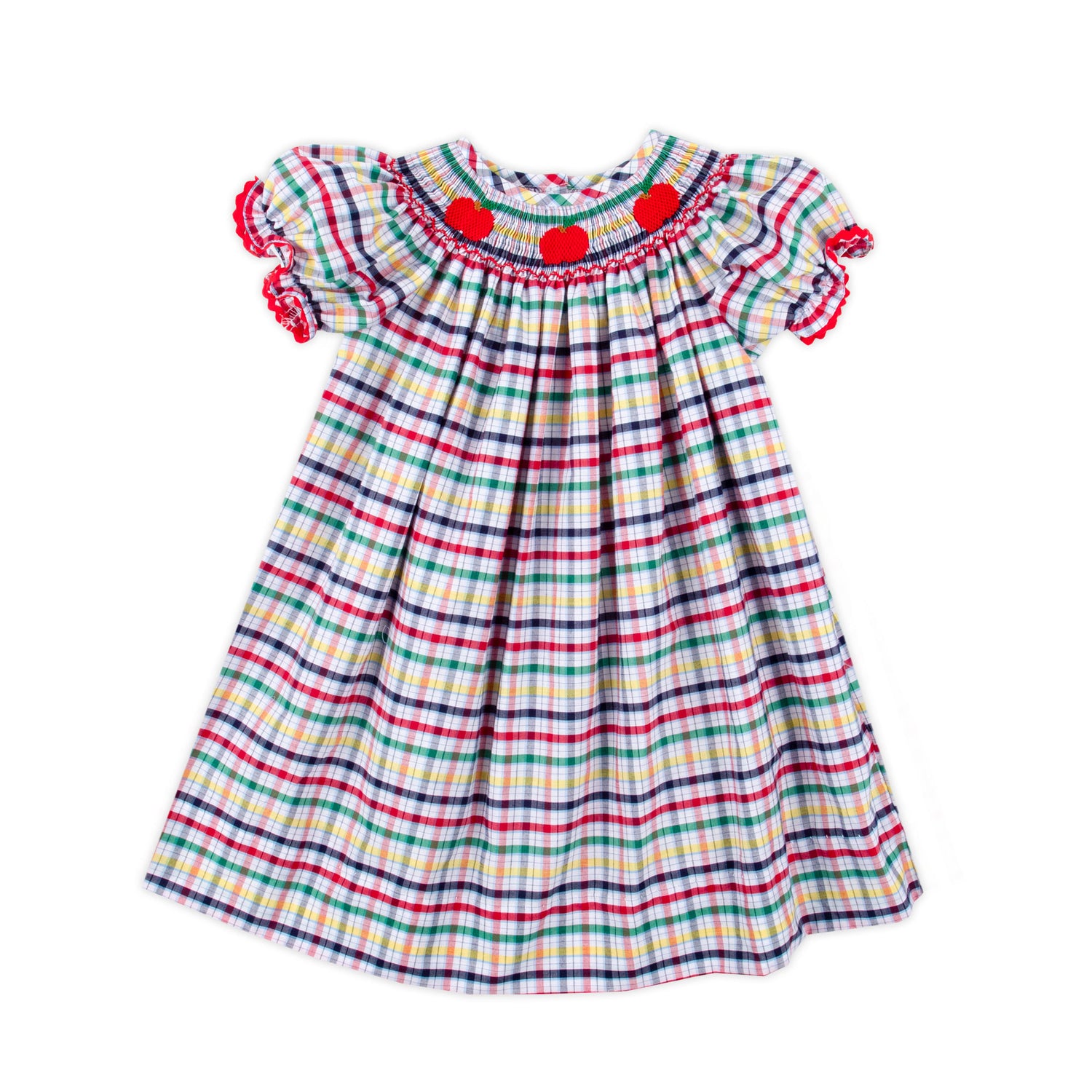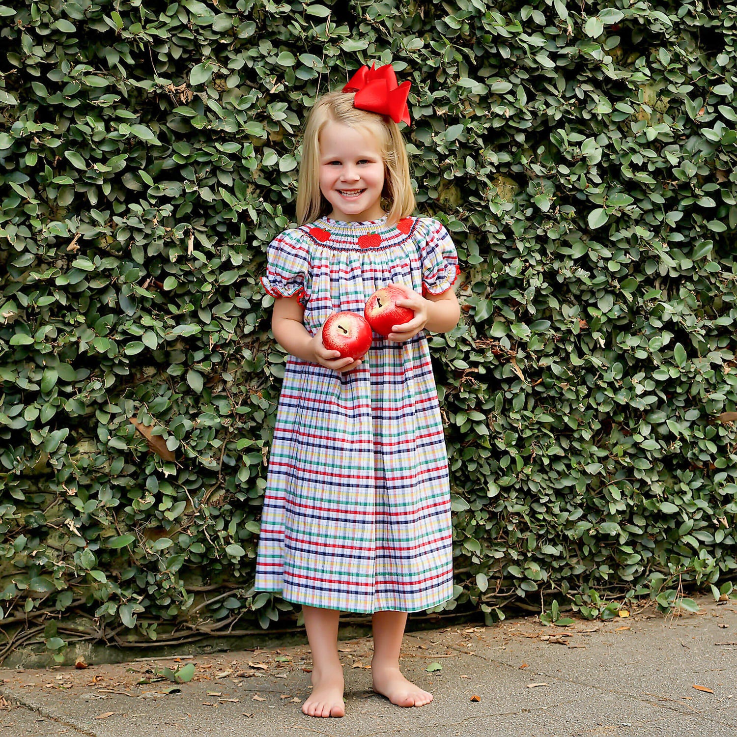 Apple Trio Primary Plaid Smocked Bishop Dress