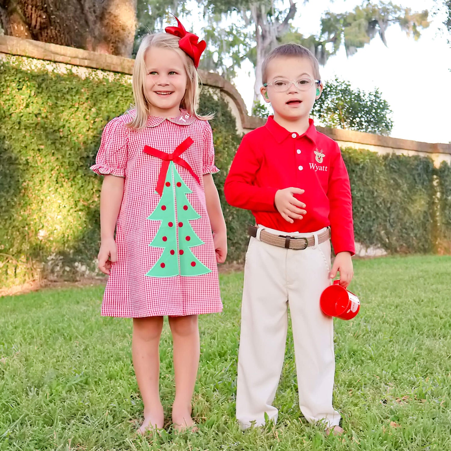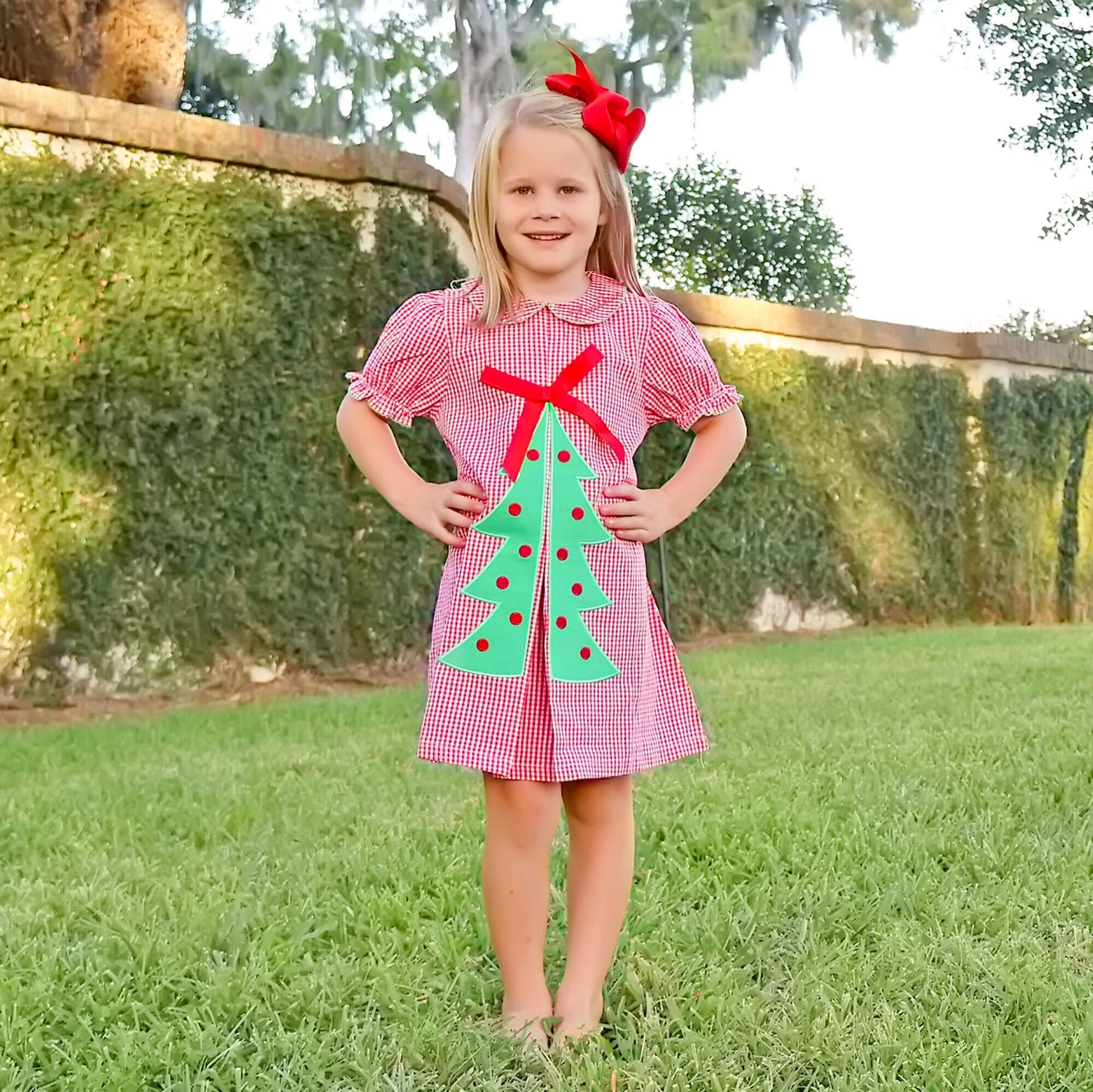 Get your little one ready for Santa's arrival in this festive Christmas Tree Front Pleat Dress! Perfect for holiday gatherings and magical moments, this red gingham A-line dress brings the holiday spirit to life with a charming Christmas tree front and center, topped off with a sweet bow. Ideal for Christmas pictures and celebrations, it’s sure to be a holiday favorite!
