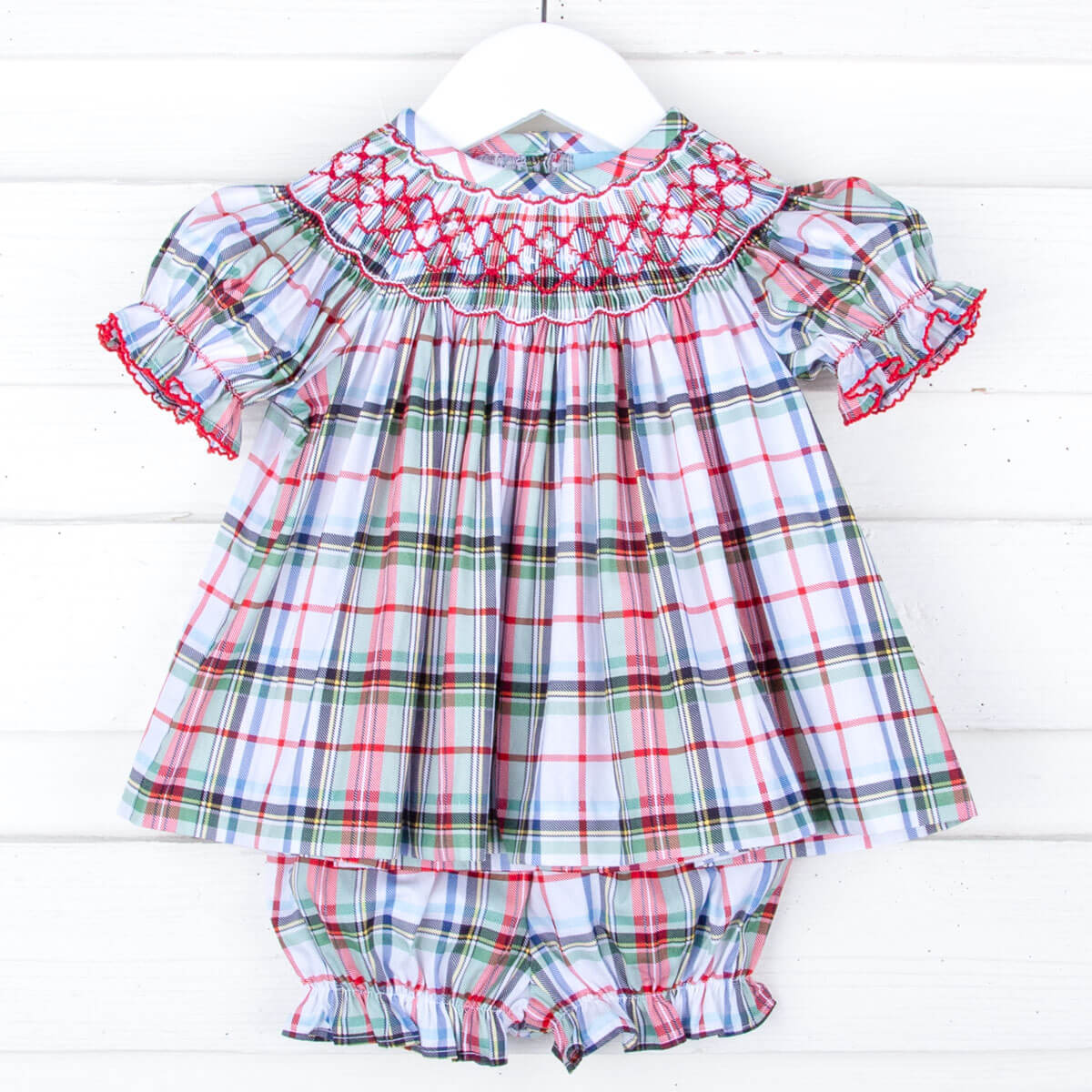 Douglas Plaid Smocked Bishop Bloomer Set