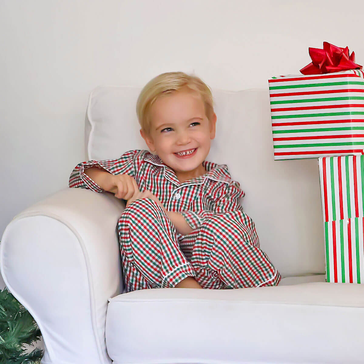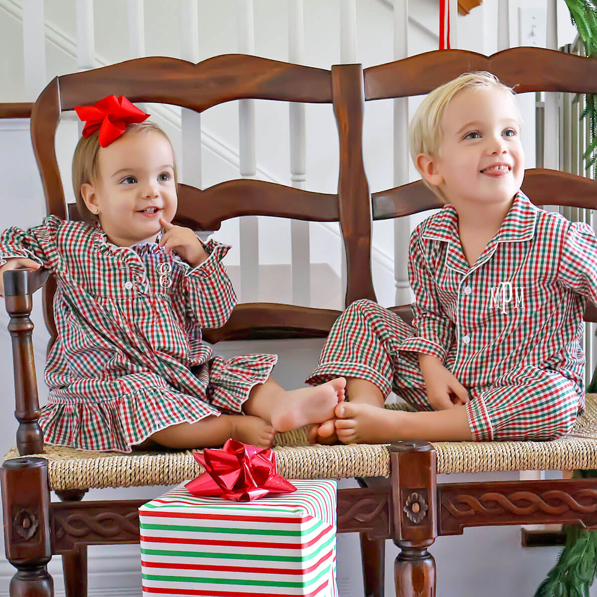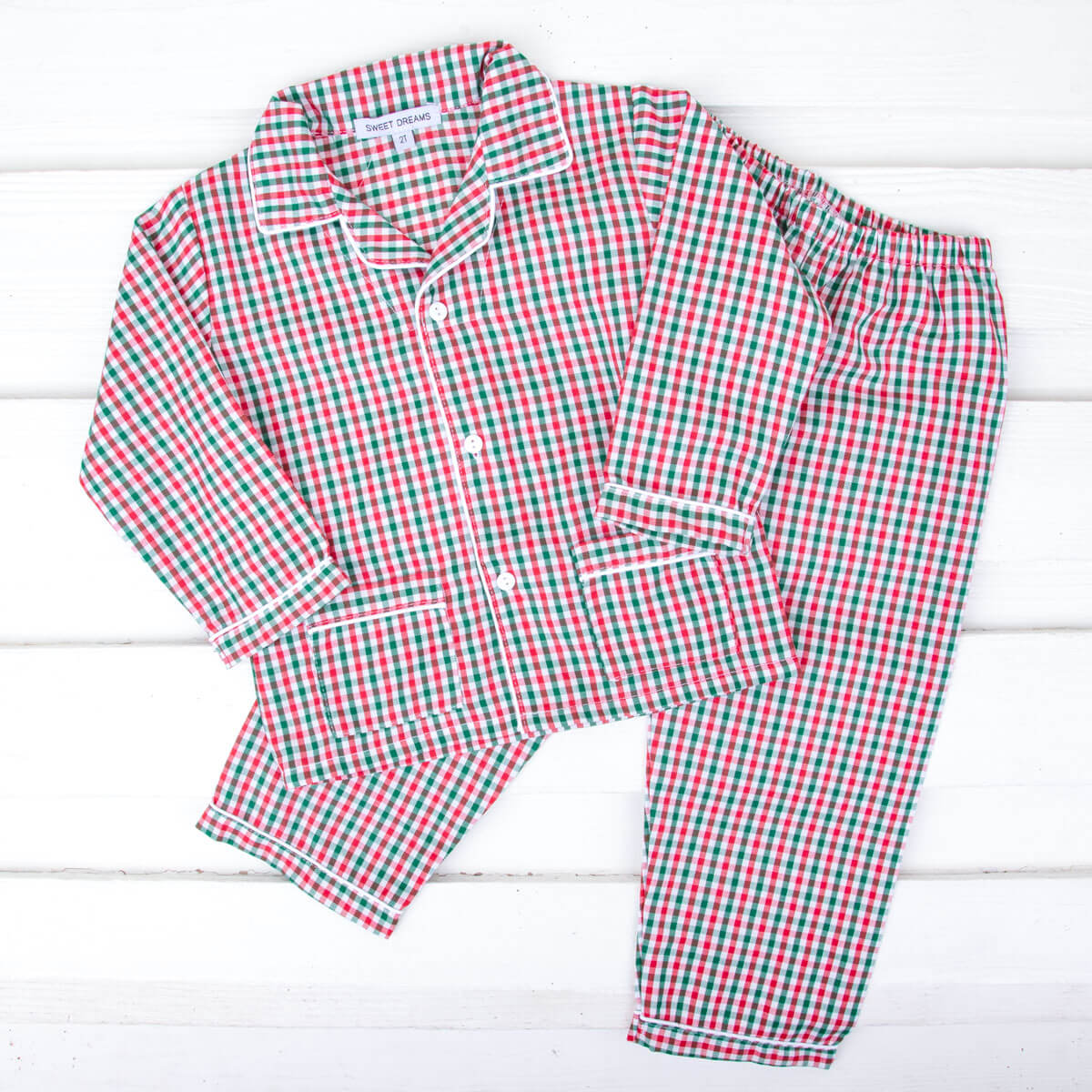 Celebrate the magic of the holidays with our Green & Red Gingham Classic Pajamas. The green and red gingham pajama top features front buttons and two side pockets. The set includes matching gingham pajama bottoms. Add a monogram to personalize your Christmas look!