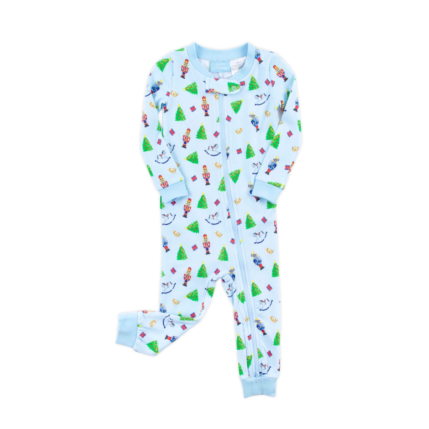 Get your little one ready for a magical holiday bedtime with the cutest Nutcracker Blue Print Zip Sleeper! This long-sleeve baby sleeper features an adorable nutcracker print with blue ribbing and an easy zip-up front. Available in both footed and footless options, it’s soft and snuggle-ready, perfect for Christmas Eve. Add a monogram for a special holiday touch, and don’t forget to coordinate with siblings for the ultimate festive look!