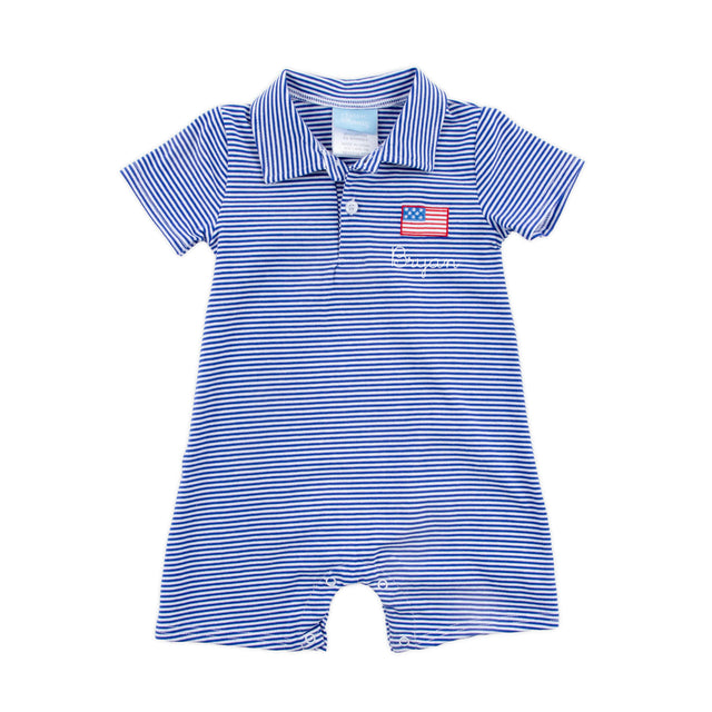 Patriotic Spirit Blue Stripe Polo Romper