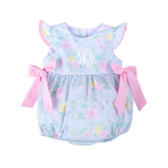 Celebrate Easter and springtime in the most charming way with our Peony Floral Avery Bubble. This darling Avery-style bubble features a pink peony print, perfect for any spring celebration. With sweet pink side tie bows and flutter sleeves, it adds an extra touch of girly sweetness. Add a monogram to make it even more special. Snaps at the stride for easy changes. Ideal for twirling at family gatherings or Easter adventures, this bubble is sure to bring charm and grace to your little one's special moments!