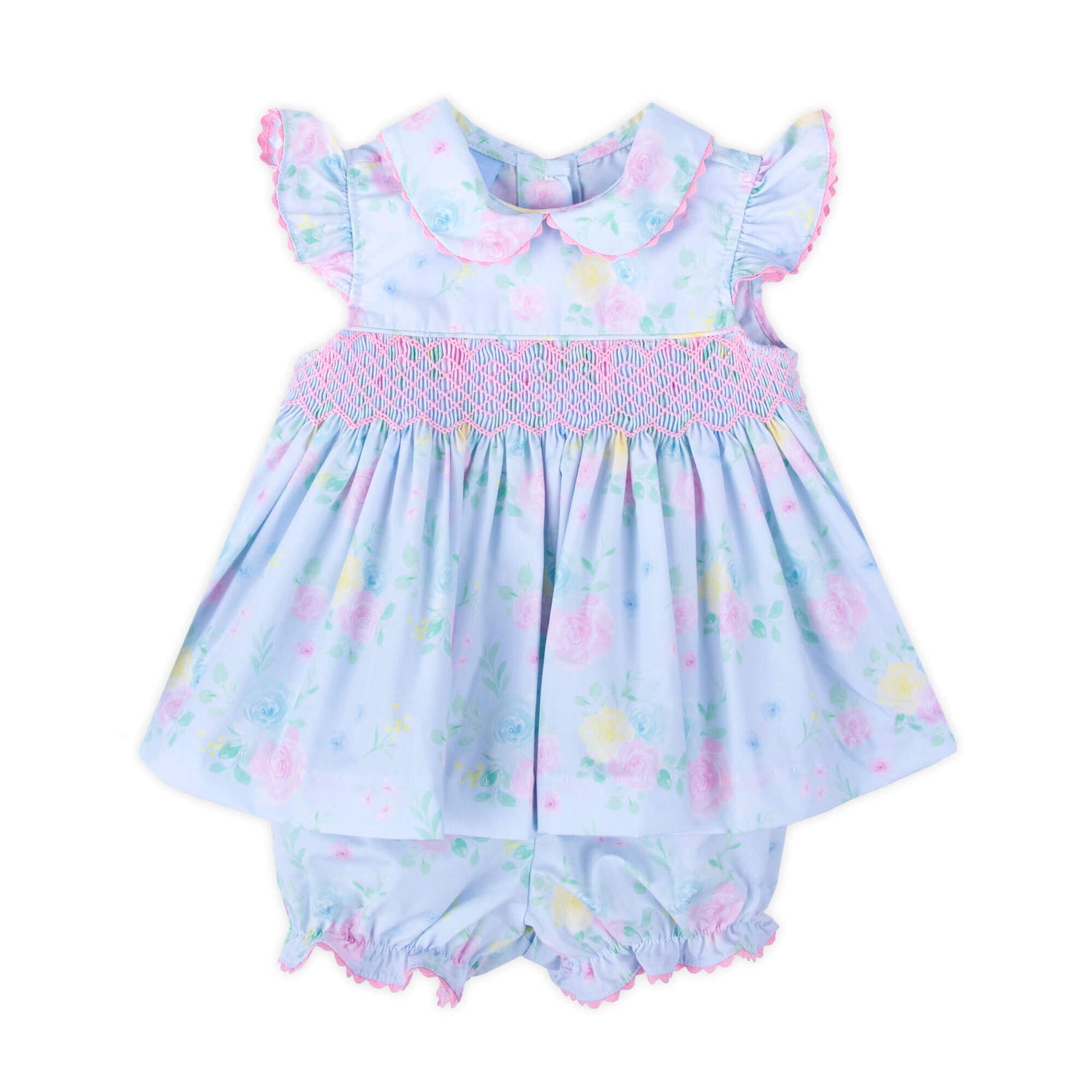 Peony Floral Smocked Collared Bloomer Set