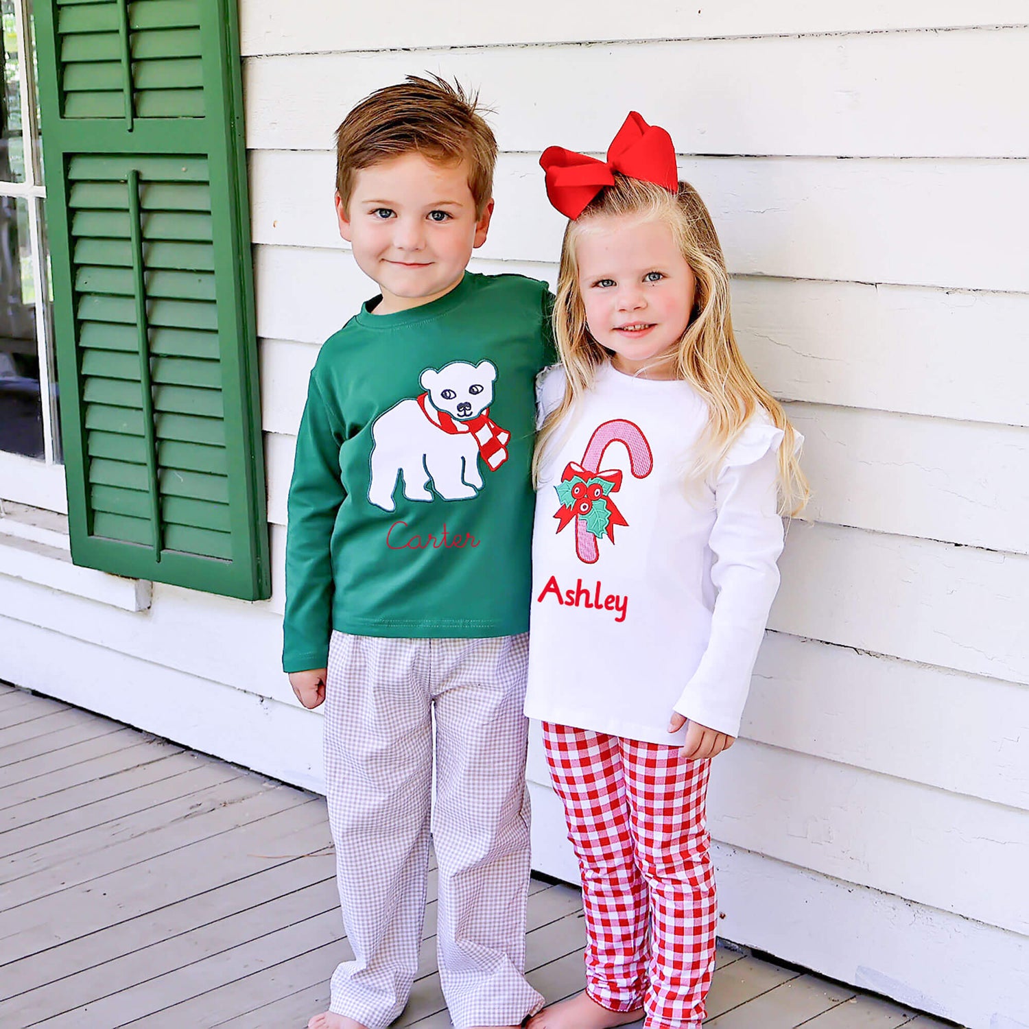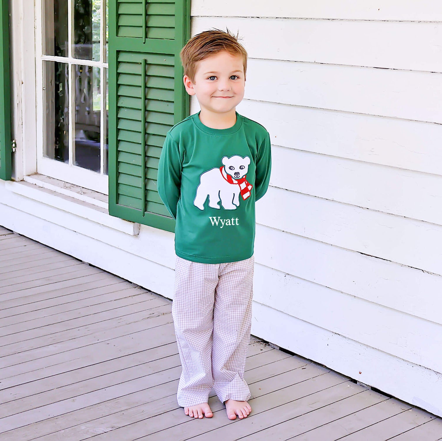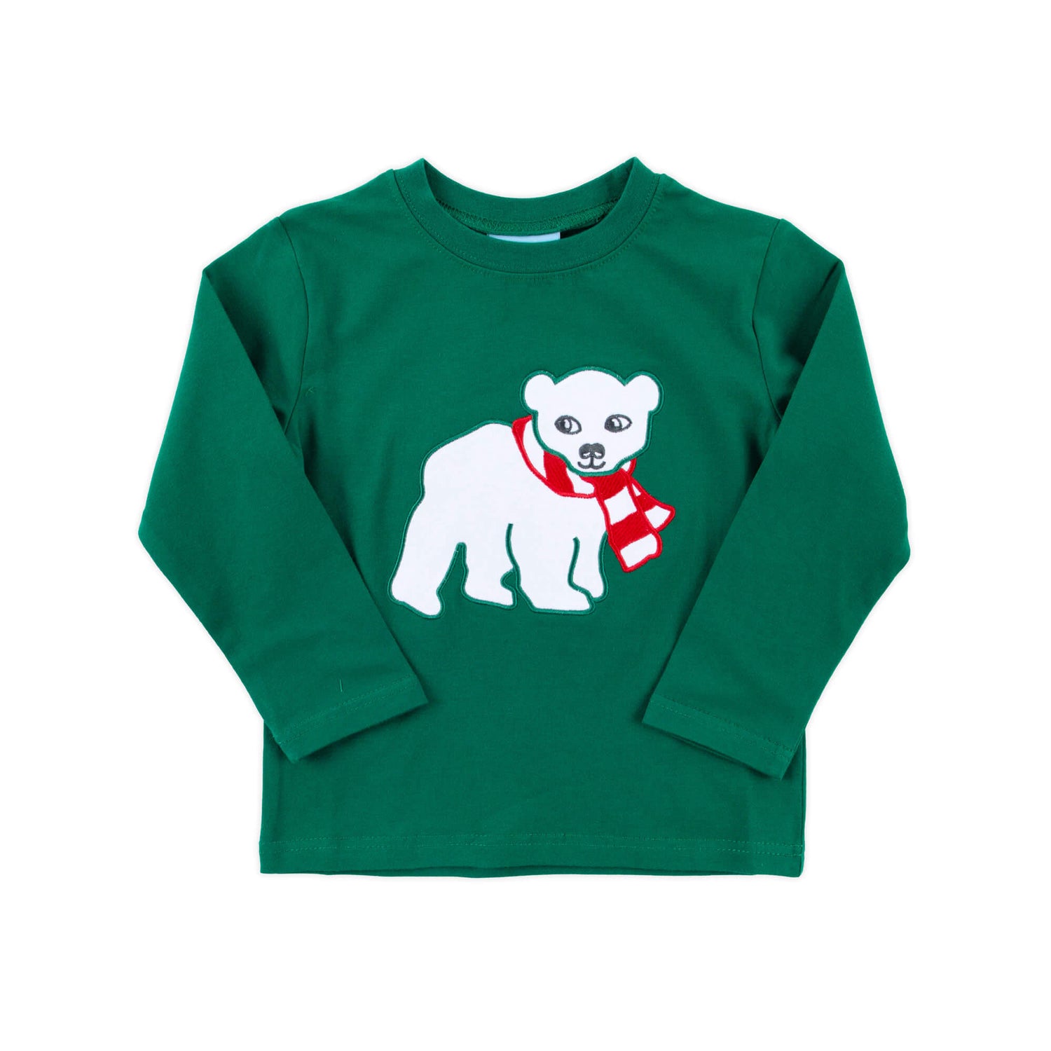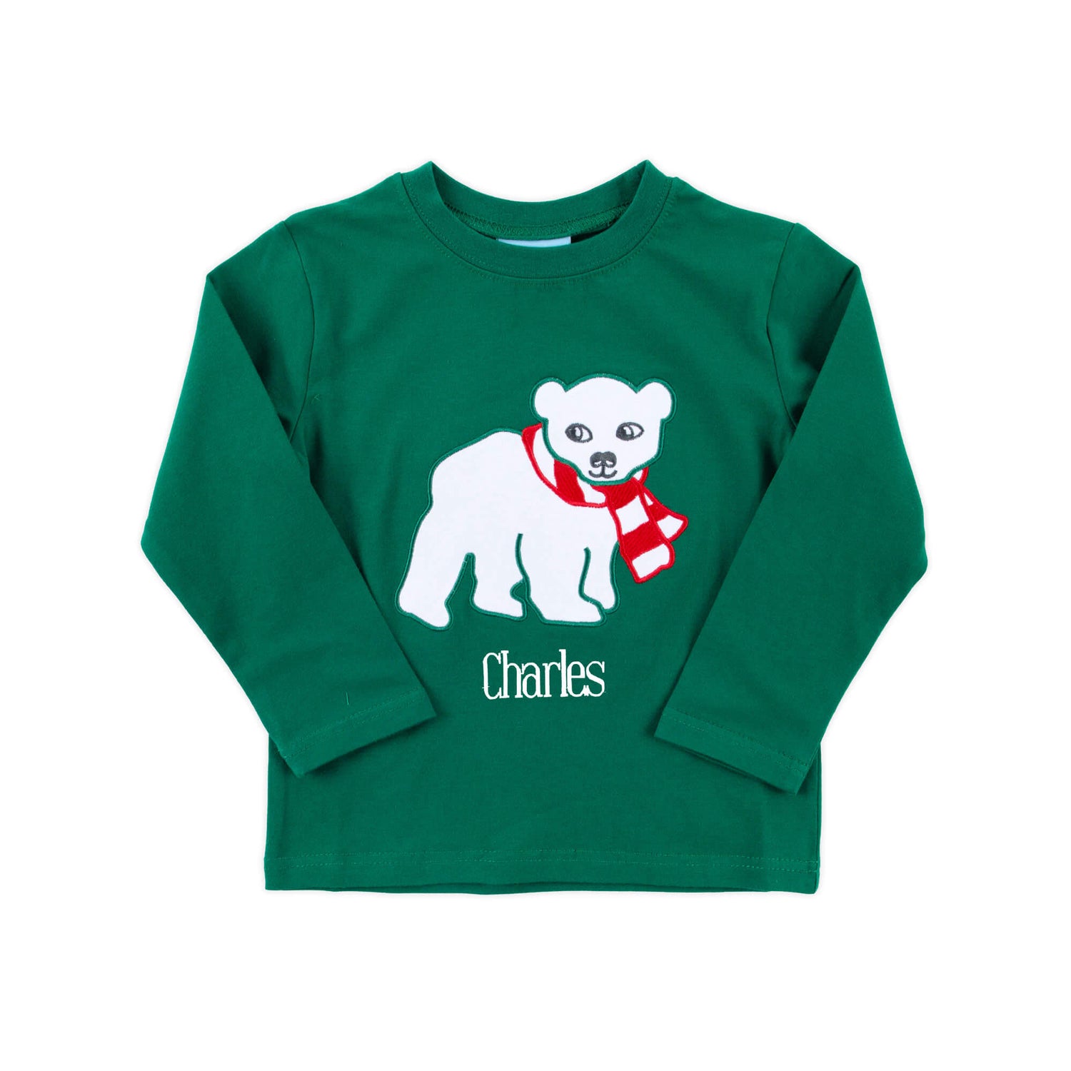 Get ready to spread Christmas cheer with our Polar Bear Hunter Green Long Sleeve Shirt! This green knit shirt features the sweetest applique of a polar bear, making it the perfect outfit for holiday parties, playtime fun, comfort, and cuteness! Don't forget to add a monogram for a personalized touch!