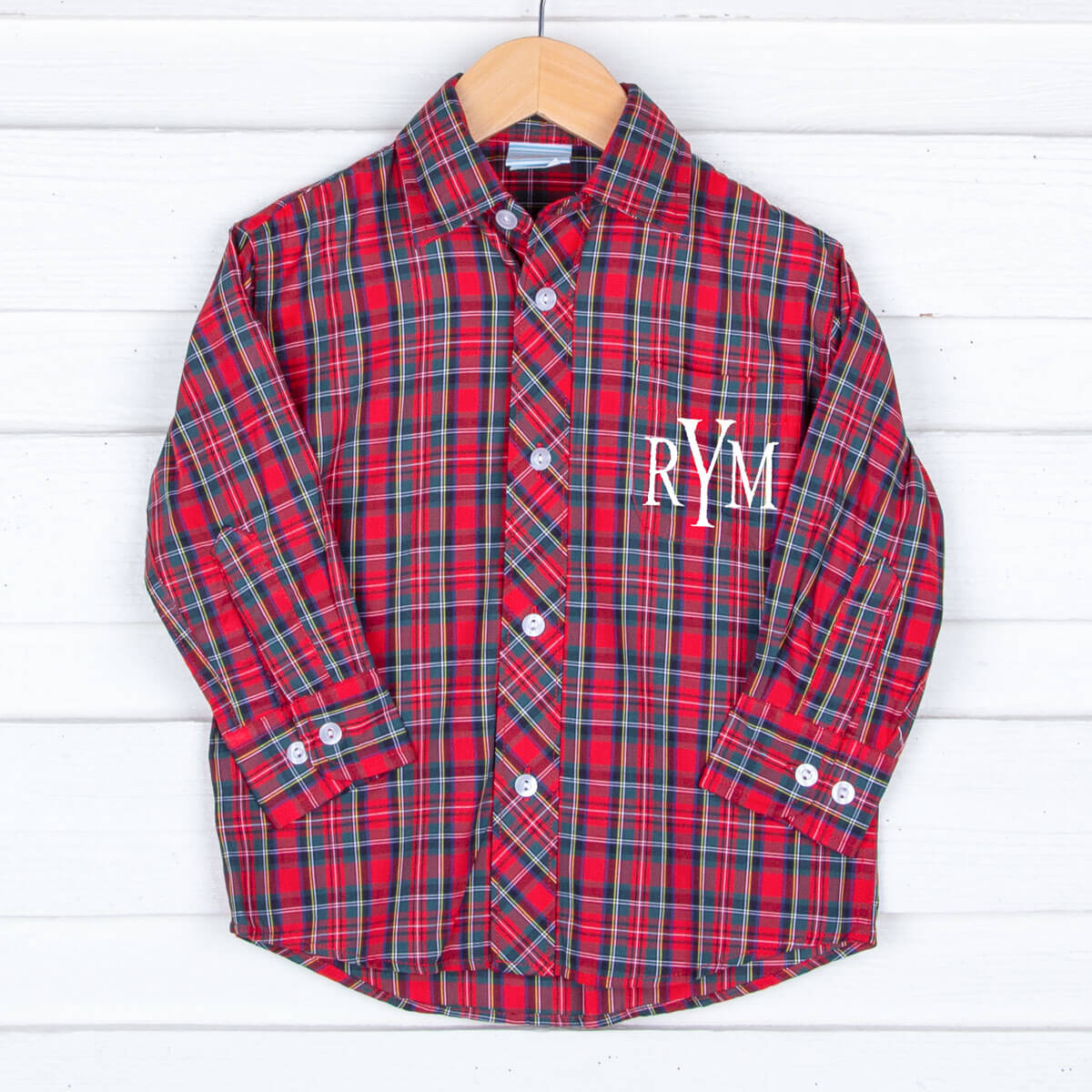 Make sure your little one is ready for the Holidays with ourRed Plaid Button Down Long Sleeve Shirt. Add a monogram to finish the look.