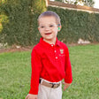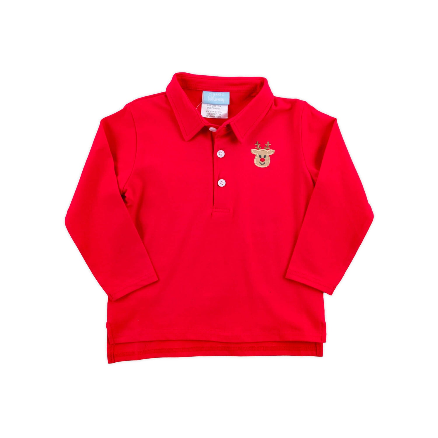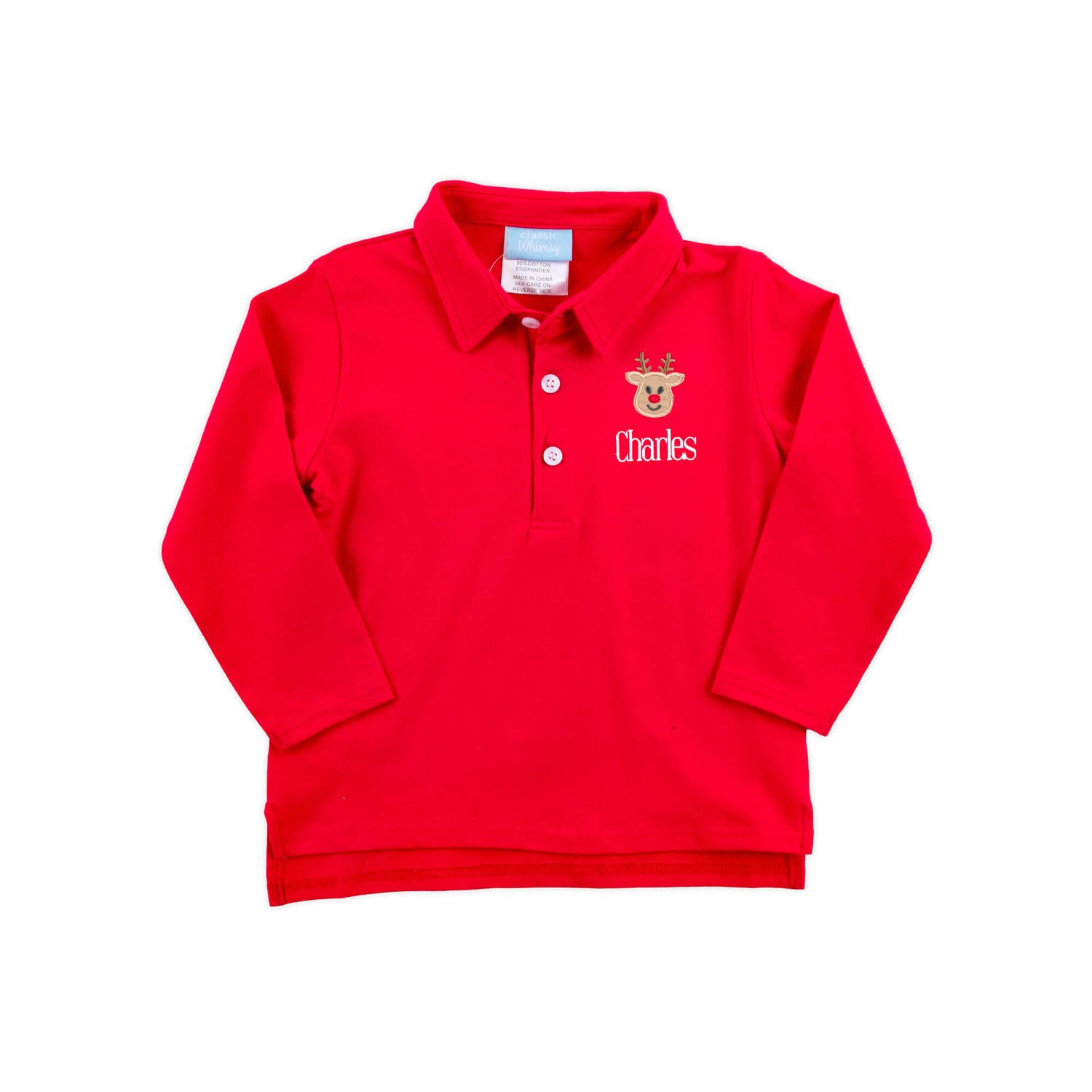 This Reindeer Red Long Sleeve Polo is perfect for pictures with Santa or unwrapping Christmas presents! The red polo features a charming Reindeer applique on the side. Ideal for holiday parties, playtime fun, comfort, and cuteness! Don’t forget to add a monogram for a personalized touch!