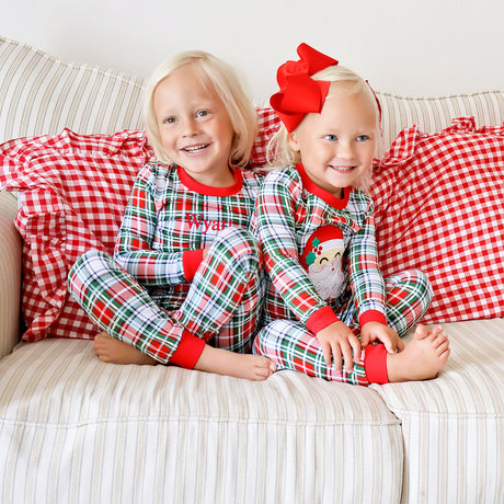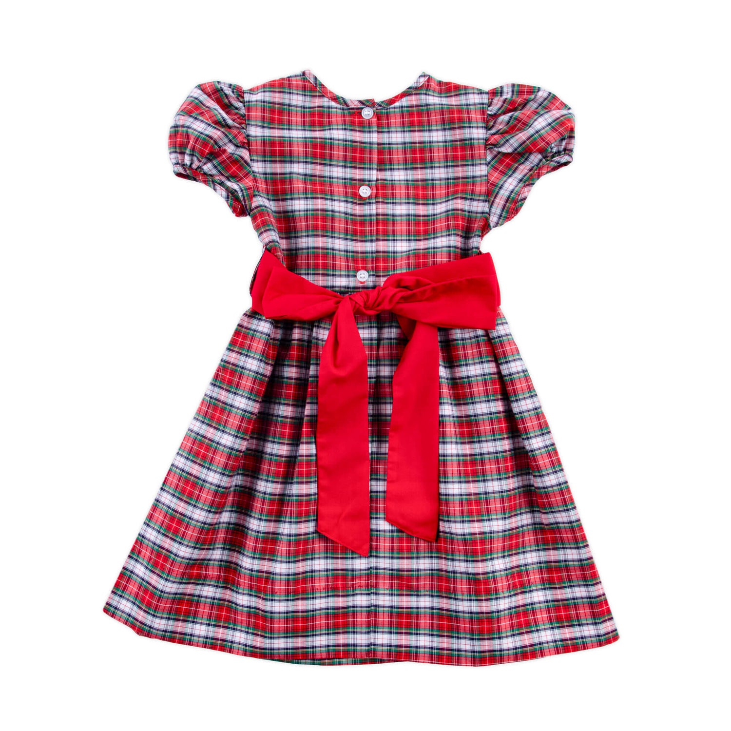Celebrate Christmas in our Seattle Red Plaid Sash Dress. This charming red plaid dress features an adorable red sash and bishop sleeves, making it perfect for the festive season. Add a monogram to finish your Christmas look!