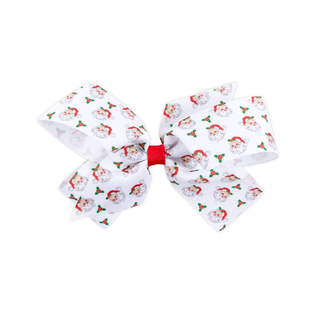 Make sure she's ready for pictures with Santa and fun festivities with this Vintage Santa White Print Hair Bow.
